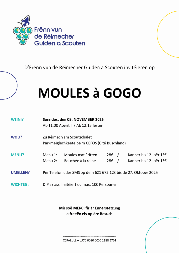 Die Freunde der Pfadfinder Remich laden zu „Muscheln à gogo“ ein.